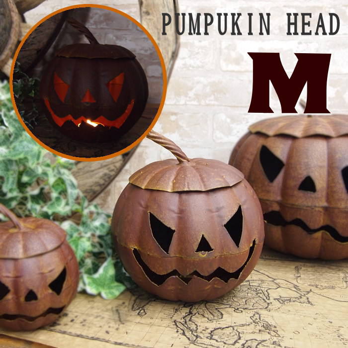 メタルヘッドパンプキン中 ハロウィン かぼちゃ オブジェ 飾り 玄関 デコレーション 装飾 置物