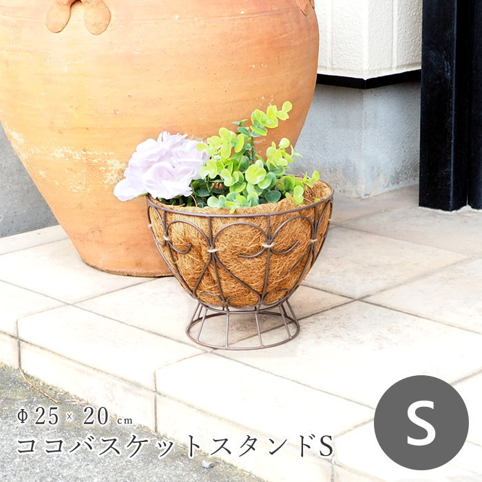 ココバスケットスタンド S プランター おしゃれ 屋外 3084 村田屋産業 ガーデニング バスケット ココライナー付き 植木鉢 ポット 寄せ植え フラワーポット ワイヤーバスケット アイアン ココファイバー ライナー スタンド 脚付き 観葉植物 園芸 花 ハーブ 鉢植え