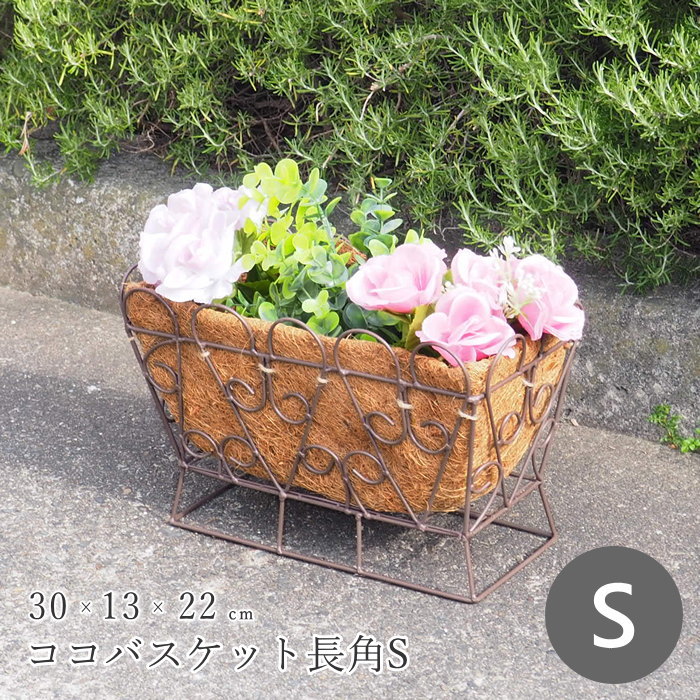 ココバスケット長角 S プランター おしゃれ 屋外 3145 村田屋産業 ガーデニング バスケット ココライナー付き 長方形 植木鉢 ポット 寄せ植え フラワーポット ワイヤーバスケット アイアン ココファイバー ライナー スタンド 脚付き 四角 観葉植物 園芸 ココヤシ