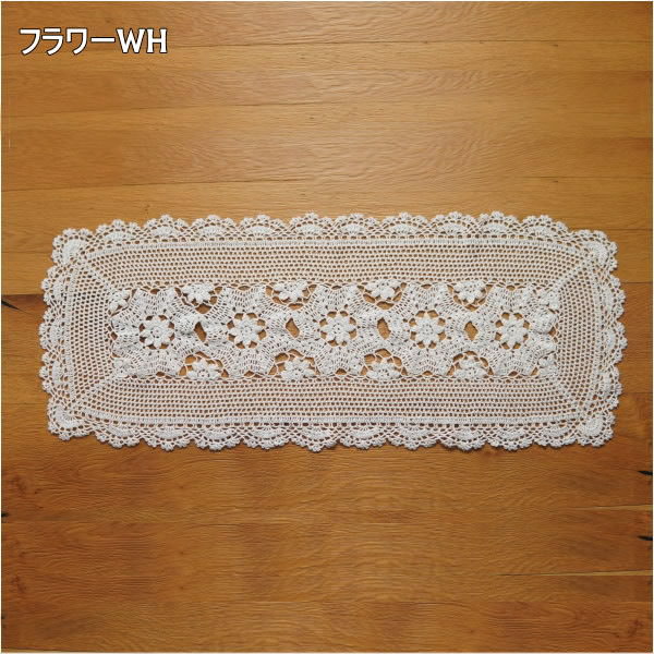 ●テーブルランナー クロシェットフラワーWH