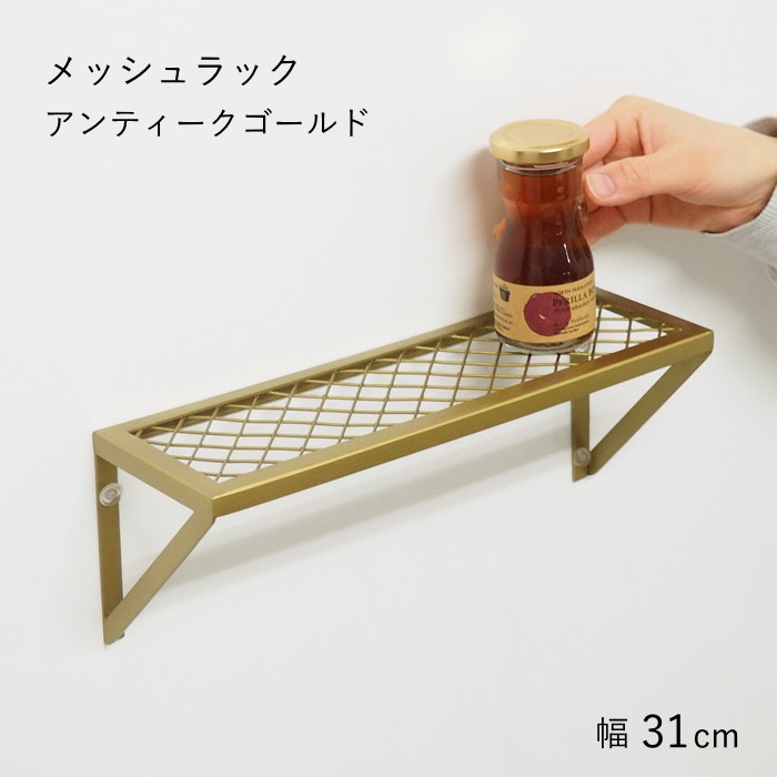 メッシュラックS アンティークゴールド ウォールシェルフ 棚 アイアン 壁掛け ミニ ラック 飾り棚 おしゃれ