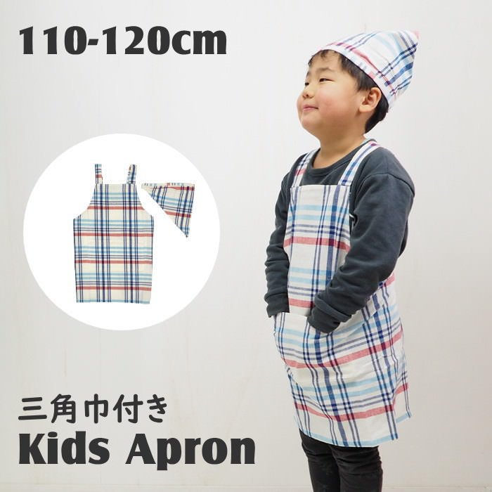 即出荷 Mサイズ クレアチェック アイボリー エプロン キッズ 子ども用 三角巾付き バンダナセット 100cm 110cm 120cm キッズエプロンM 729636 フレンズヒル