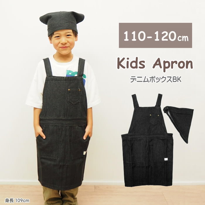 ●110〜120cmサイズの子供用エプロン。おそろいの三角巾付き!