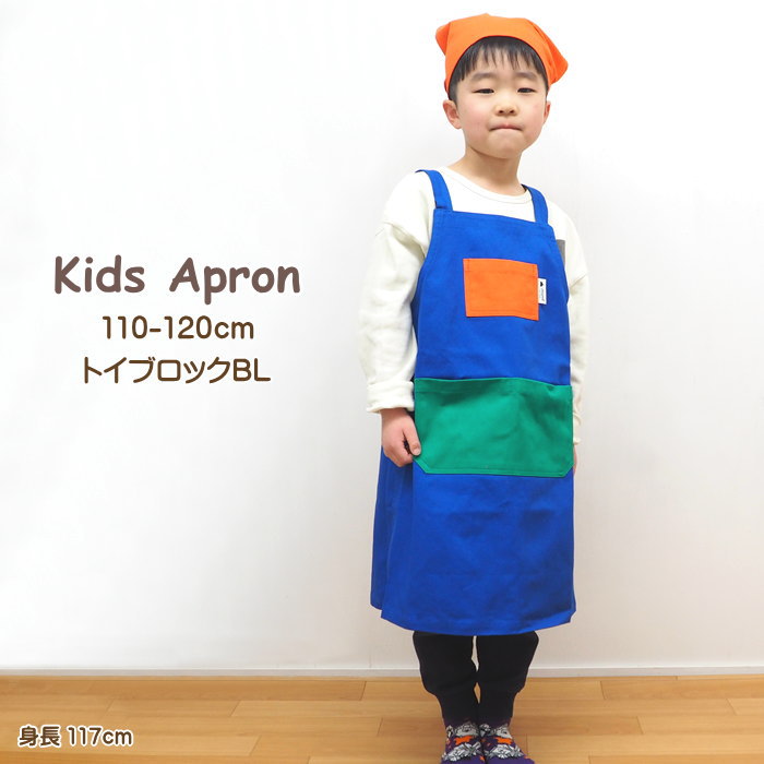即出荷 キッズエプロンM トイブロックBL 子供 三角巾 110 120 ゴム おしゃれ