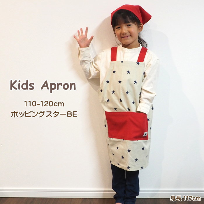 キッズエプロンM ポッピングスターBE エプロン 子供 三角巾 110 120 ゴム おしゃれ