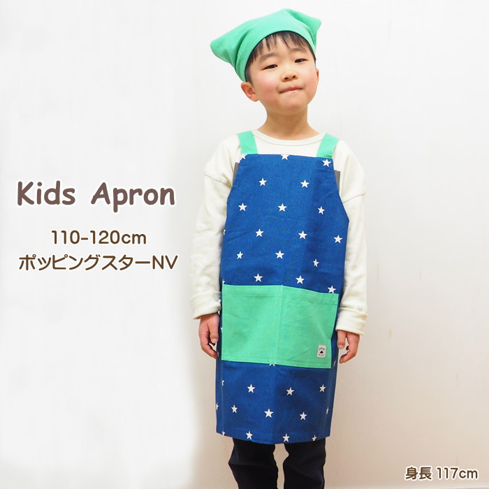 キッズエプロンM ポッピングスターNV エプロン 子供 三角巾 110 120 ゴム おしゃれ