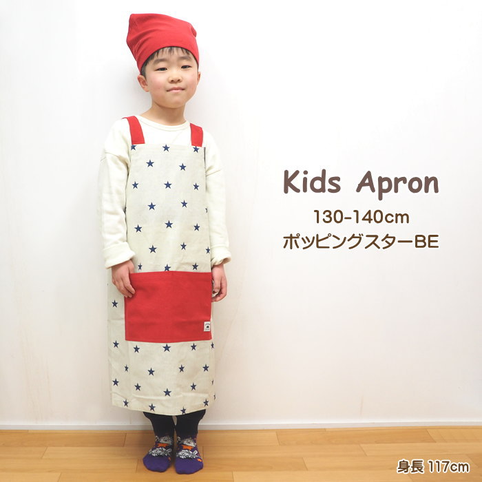 即出荷 キッズエプロンL ポッピングスターBE エプロン 子供 三角巾 130 140 男の子 女の子
