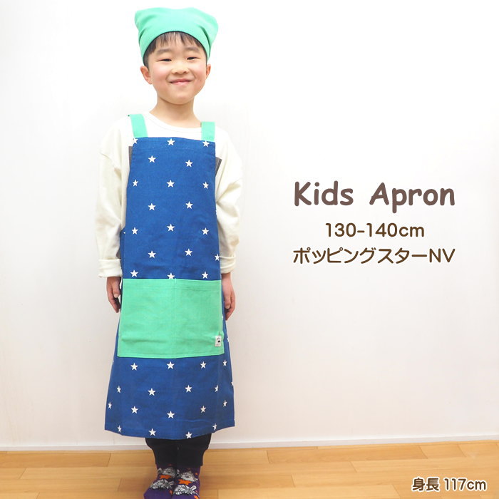 即出荷 キッズエプロンL ポッピングスターNV エプロン 子供 三角巾 130 140 男の子 女の子