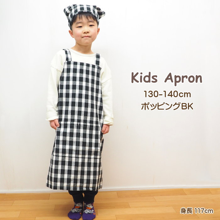 即出荷 キッズエプロンL ポッピングBK エプロン 子供 三角巾 130 140 男の子 女の子