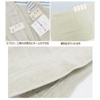 ●うしろをボタンで留めるだけのシンプルなH型エプロンで、胴周りを2段階に調節できます。三角巾はうしろの部分がゴム素材のため、簡単に着脱できます。