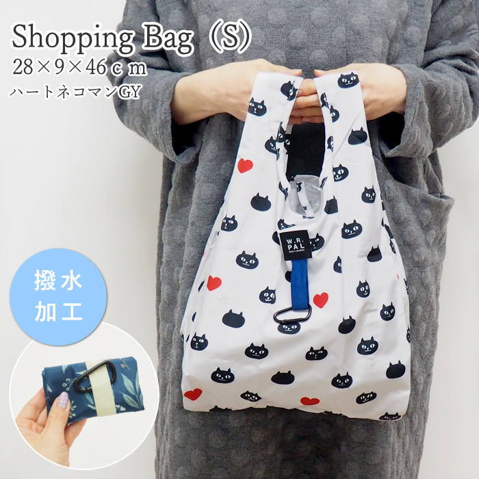 エコバッグS 910492-GY ハートネコマンGY 折り畳み おしゃれ 小さめ コンパクト お買いもの トート ショッピング レジ 折りたたみ レジ袋型 撥水