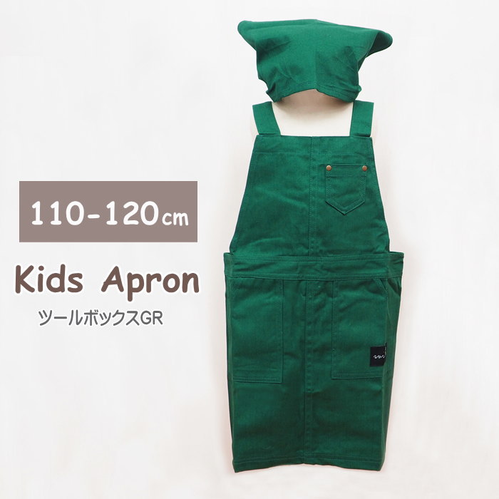 ツールボックスGR エプロン キッズ 三角巾付き 子供用 110cm 120cm お手伝い 無地 シンプル おしゃれ キッズエプロン M 830707-GR フレンズヒル