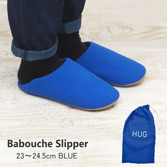 ●HUG バブーシュスリッパ ポーチ付き ブルー