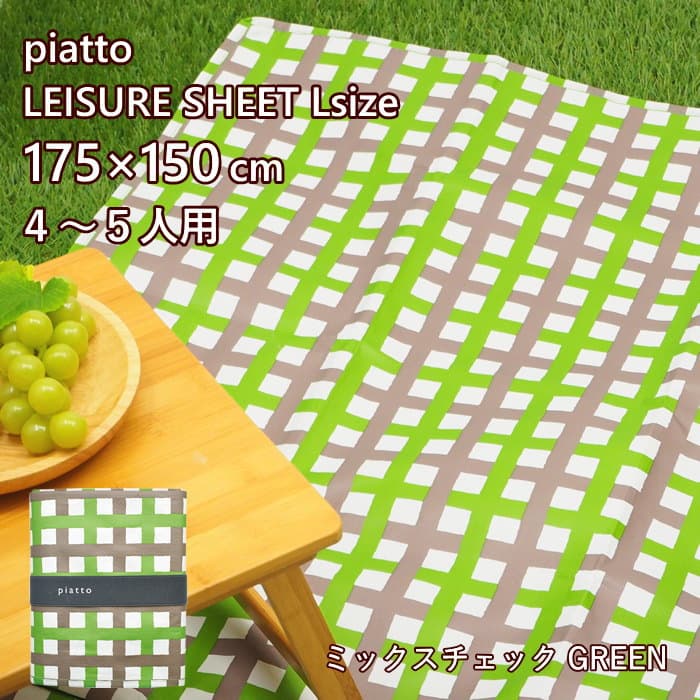 ●piatto レジャーシート L 175×150cm(4〜5人用) ミックスチェック GREEN