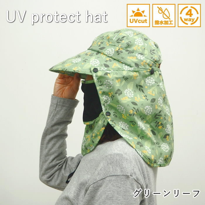 UVプロテクトハット グリーンリーフ 帽子 レディース ガーデニング つば広 日よけ フェイスカバー おしゃれ 母の日