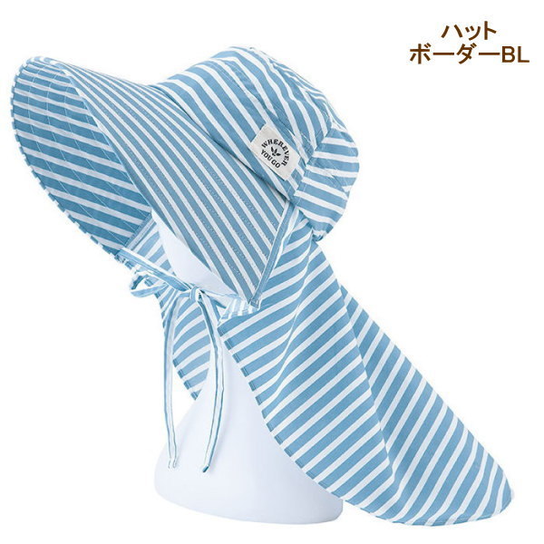 ハット/ボーダーBL 帽子 uv レディース おしゃれ つば広 日よけ フェイスカバー ネックカバー ハット ガーデニング