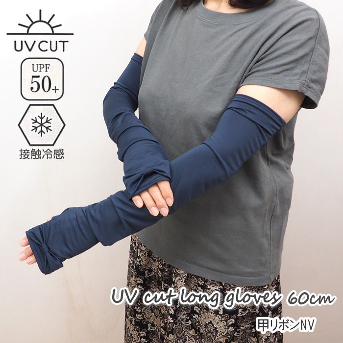 UV&冷感手袋60cm 甲リボンNV アームカバー uvカット 冷感 おしゃれ ロング 指なし
