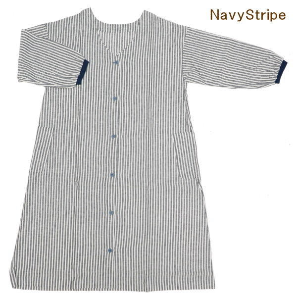 NavyStripe エプロン 割烹着 袖付き スモック コットンリネン おしゃれ かわいい 綿麻 ワンピース シンプル 羽織り 2way割烹着ロングエプロン 58-8029