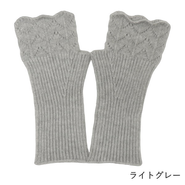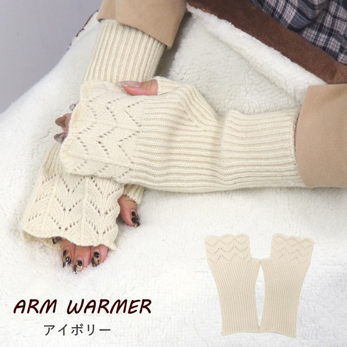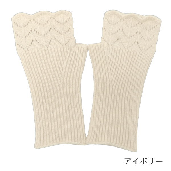 指先スカラップ編みハンドウォーマー アイボリー アームウォーマー 手袋 レディース 暖かい 指なし 冬 アームカバー 防寒