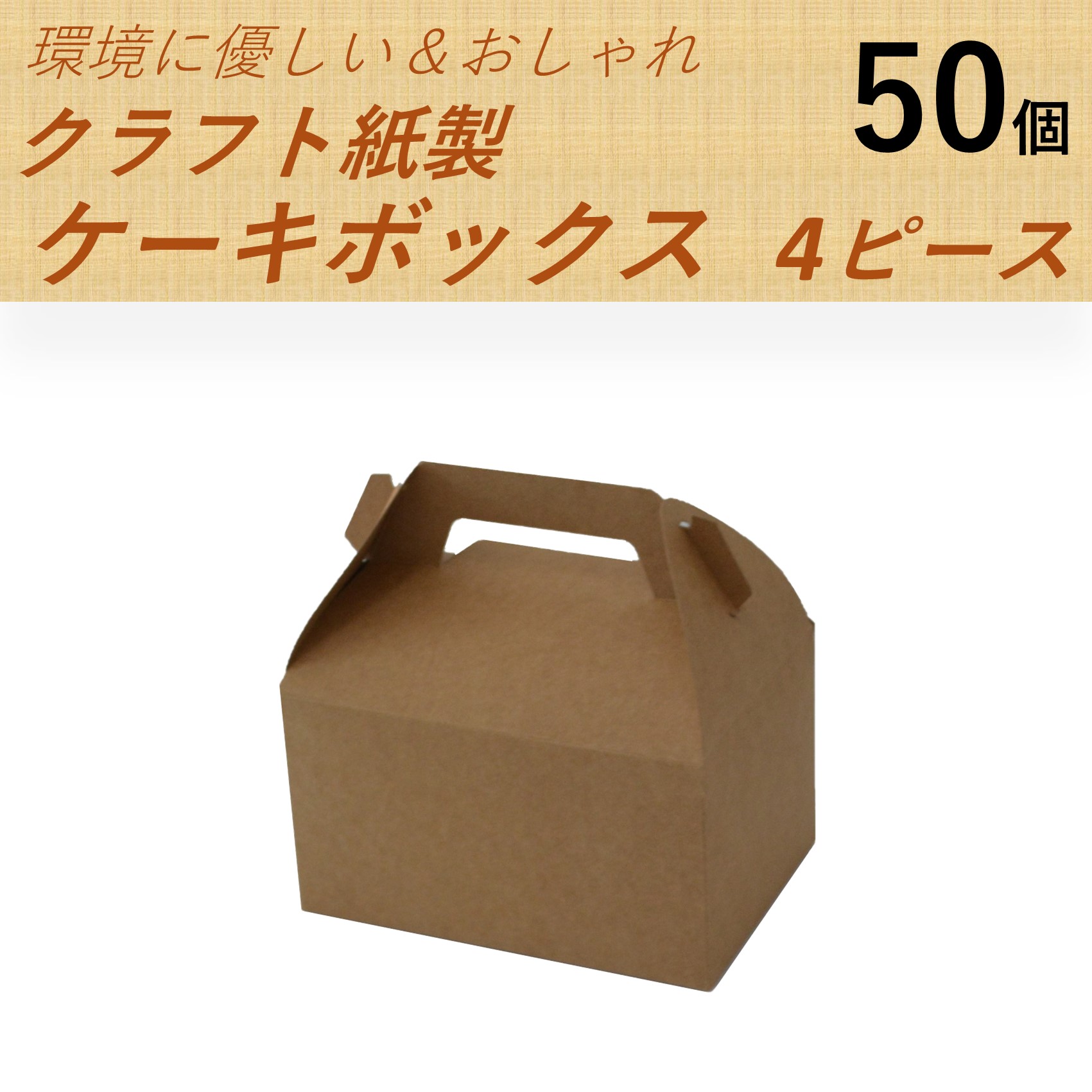 クラフト紙製 ケーキ箱 4個用サイズ 50個 おしゃれでエコ ケーキボックス 販売容器 紙容器