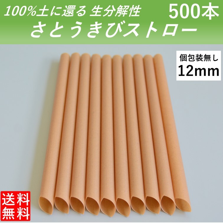 ストロー 生分解性 さとうきびストロー 片先 タピオカ 12mm 500本 エコストロー 個別包装無し