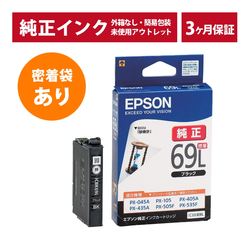 ///LINEクーポン有/// ICBK69L 増量 単品 密着袋あり 純正 インク アウトレット EPSON (エプソン) インクカートリッジ ブラック(発送日より3ヶ月間保証付)