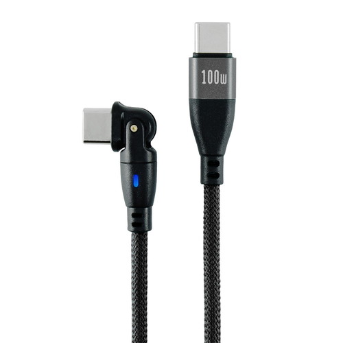 充電ケーブル Type-C to Type-C 1m 180度 回転コネクタ最大100W PD充電 LED点灯 ブラック 180RPD-10M-BK