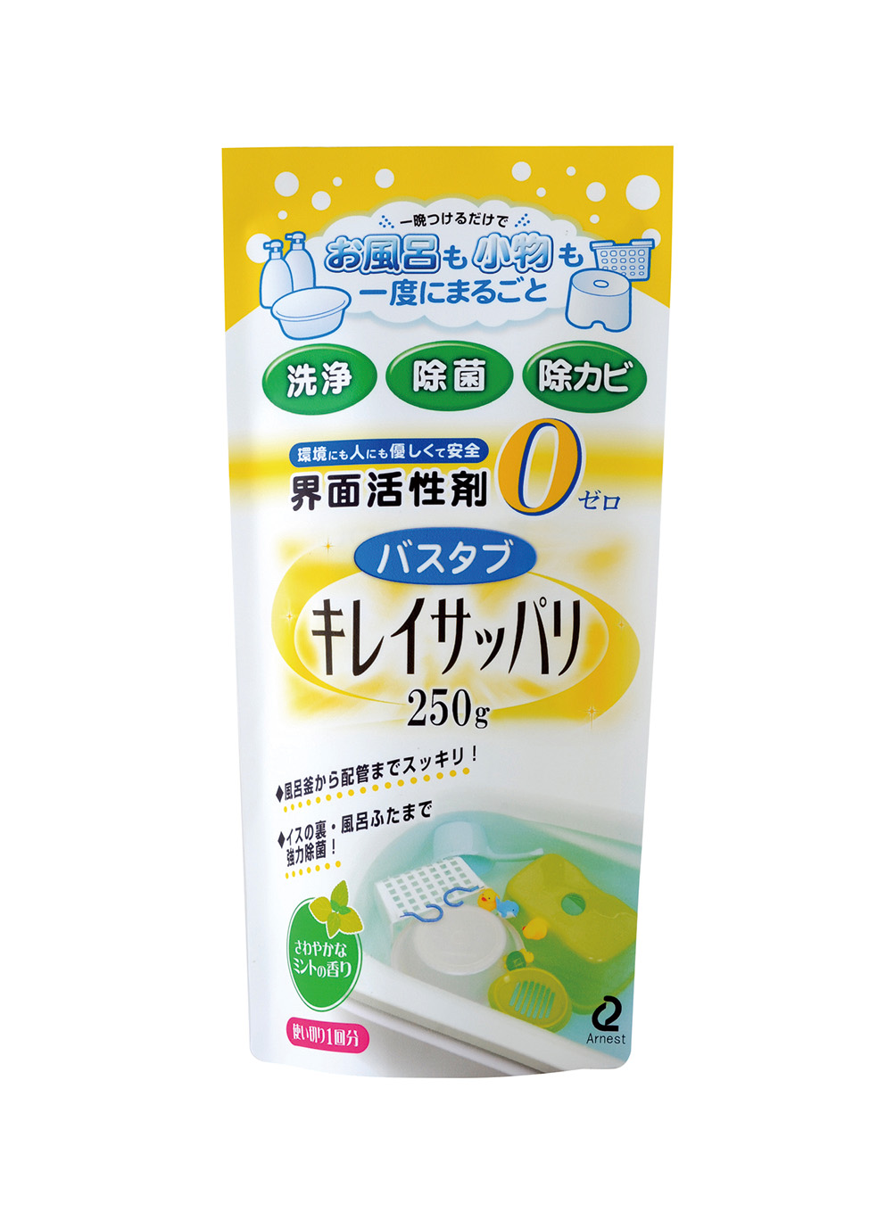 入浴後の残り湯などに入れて溶かし、浴槽や風呂釜、お風呂小物を