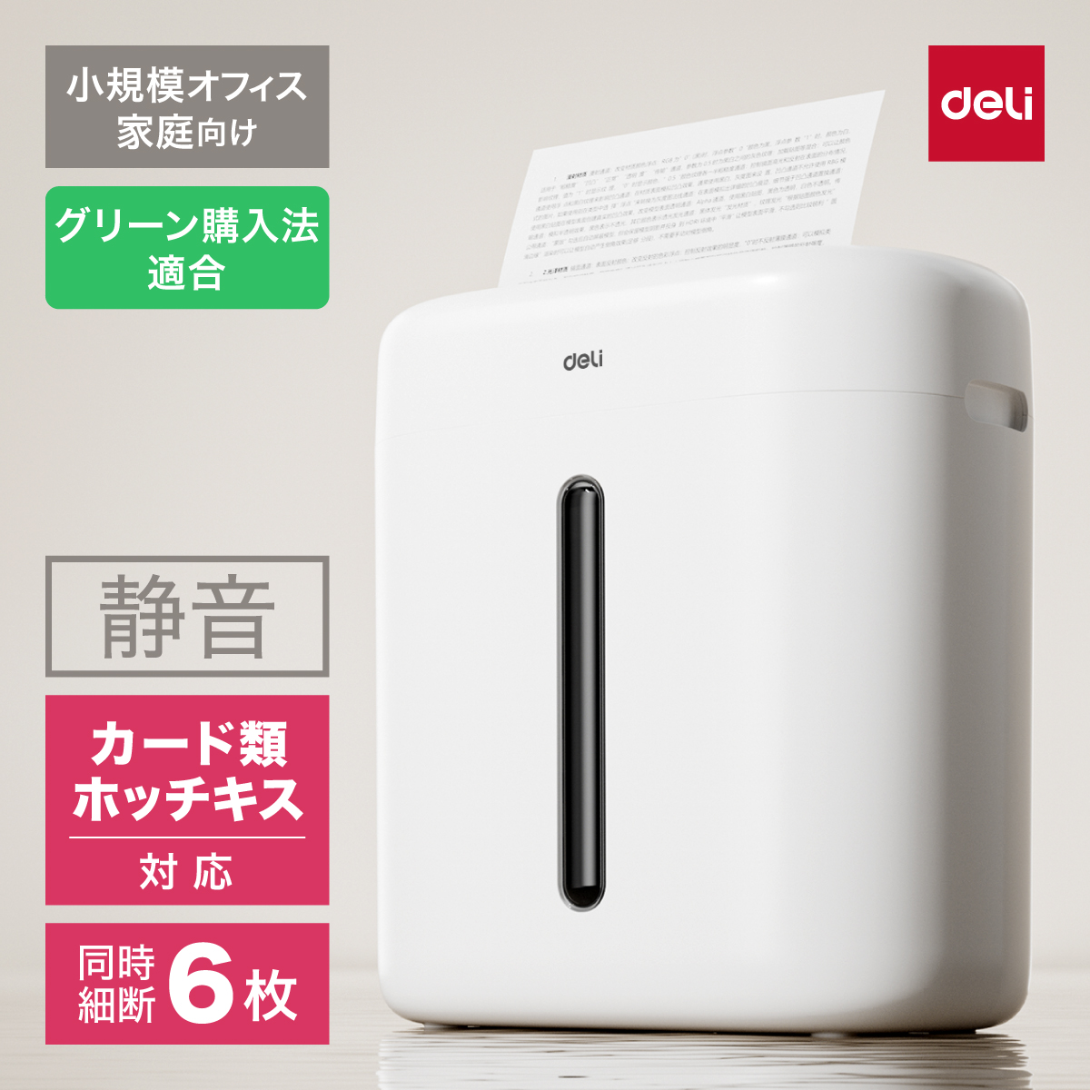 deliジャパン 小型シュレッダー 業務/家庭向け 据え置き型 クロスカット 静音 ダストボックス15L 最大A4/6枚 ホッチキス クレジットカード裁断可 T001
