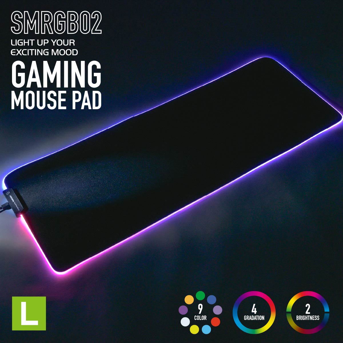 マウスパッド ゲーミングマウスパッド イルミネーション付き Lサイズ ブラック AudioComm|PC-SMRGB02-K 01-0067 オーム電機