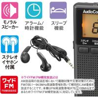 ラジオ AudioComm イヤホン巻取り液晶ポケットラジオ ブラック|RAD-P209S-K 03-0966 オーム電機