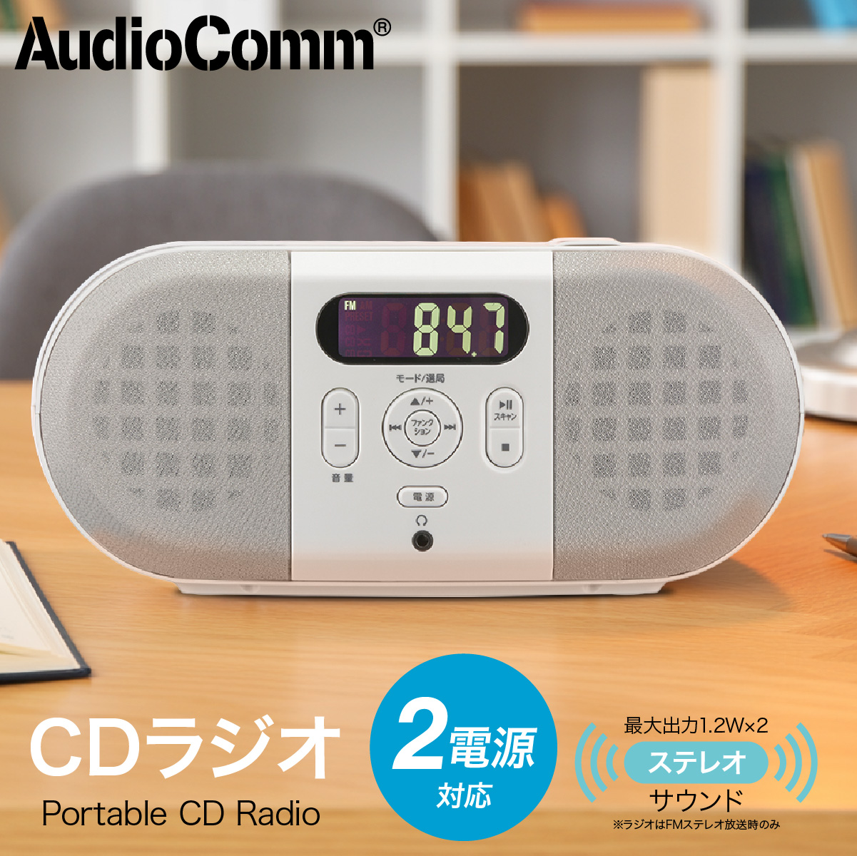 AudioComm CDラジオ 2電源対応 白|RCR-230N 03-5555 オーム電機