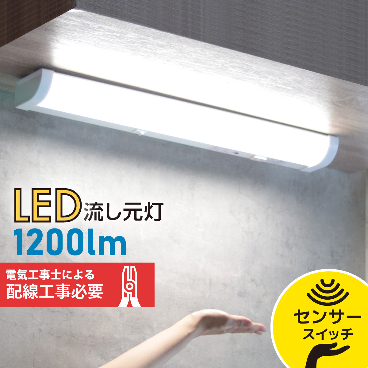 キッチンライト LED 近接センサー 蛍光灯 照明器具 流し元灯 20形 昼光色 センサースイッチ [配線工事必要] LEDライト LT-NKL14D-HCS 06-4024 オーム電機
