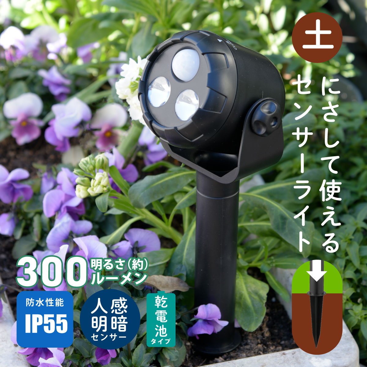 ガーデンライト 庭 LEDガーデンライト 土にさして使うセンサーライト 電池式 昼白色|LS-B300GS-2 06-4102 オーム電機
