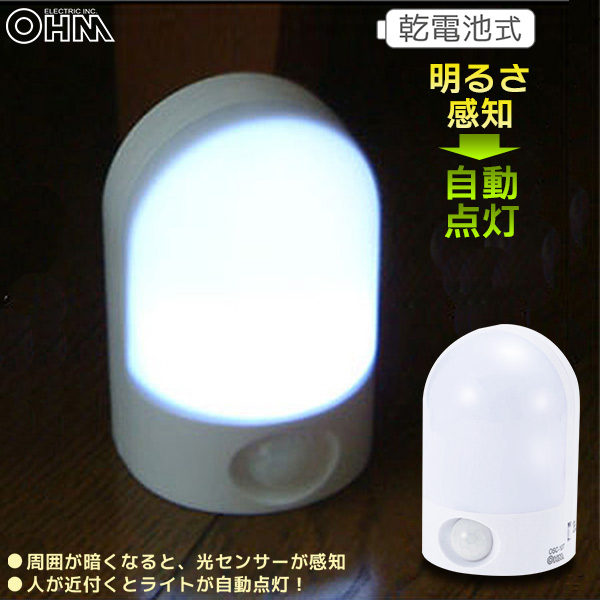 ● 光センサー、赤外線センサーを搭載した乾電池式のLEDセンサーライトです。