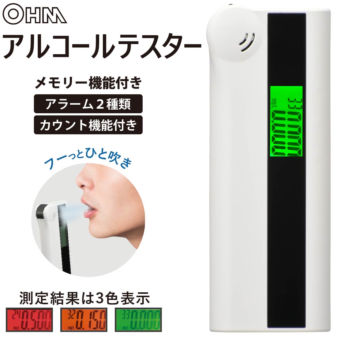 アルコールテスター アルコールチェッカー アルコール検知器|HB-A03-W 08-1190 オーム電機