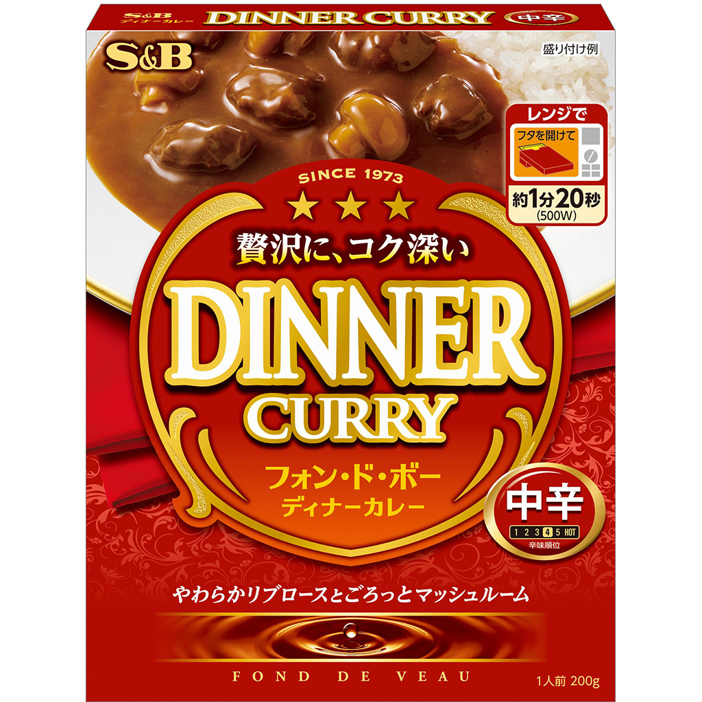 原材料名:赤ワイン煮込み牛肉(国内製造)(牛肉、赤ワイン、その他)、マッシュルーム、ソテー・ド・オニオン、小麦粉、牛脂、オニオンパウダー、牛脂豚脂混合油脂、砂糖、カレー粉、フォン・ド・ボーソース、バナナ、ビーフエキス、食塩、乳糖、リンゴペースト、ローストオニオンペースト、生クリーム、でん粉、ウスターソース、ミルクパウダー、バター加工品、加工油脂(なたね油、大豆油、食塩)、酵母エキスパウダー、香辛料、バター、煮込みマサラペースト/増粘剤(加工デンプン、増粘多糖類)、着色料(カラメル、カロテン)、調味料(アミノ酸等)、pH調整剤、酸味料、香料、(一部に小麦・乳成分・牛肉・大豆・バナナ・りんご・ゼラチンを含む)