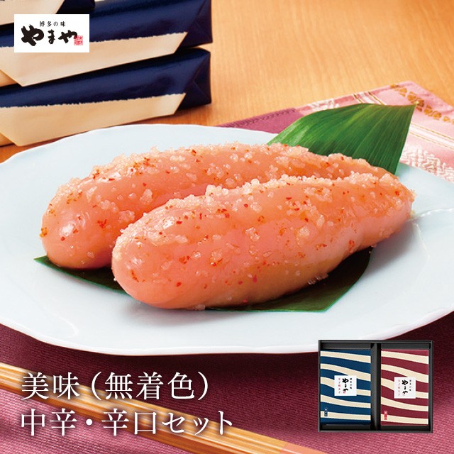 | 原材料 | 美味(無着色)/すけとうだらの卵(ロシア又はアメリカ)、米発酵調味料、食塩、唐辛子、たん白加水分解物、ゆず、酒、醤油、みりん、昆布エキス、魚醤、ソルビット、調味料(アミノ酸等)、酸化防止剤(ビタミンC)、酒精、酵素、発色剤(亜硝酸Na)、香辛料、(原材料の一部に小麦、大豆を含む) 美味辛口(無着色)/すけとうだらの卵(ロシア又はアメリカ)、米発酵調味料、食塩、唐辛子、たん白加水分解物、ゆず、酒、醤油、みりん、昆布エキス、魚醤、ソルビット、調味料(アミノ酸等)、酸化防止剤(ビタミンC)、酒精、酵素、発色剤(亜硝酸Na)、香辛料、(原材料の一部に小麦、大豆を含む) |
