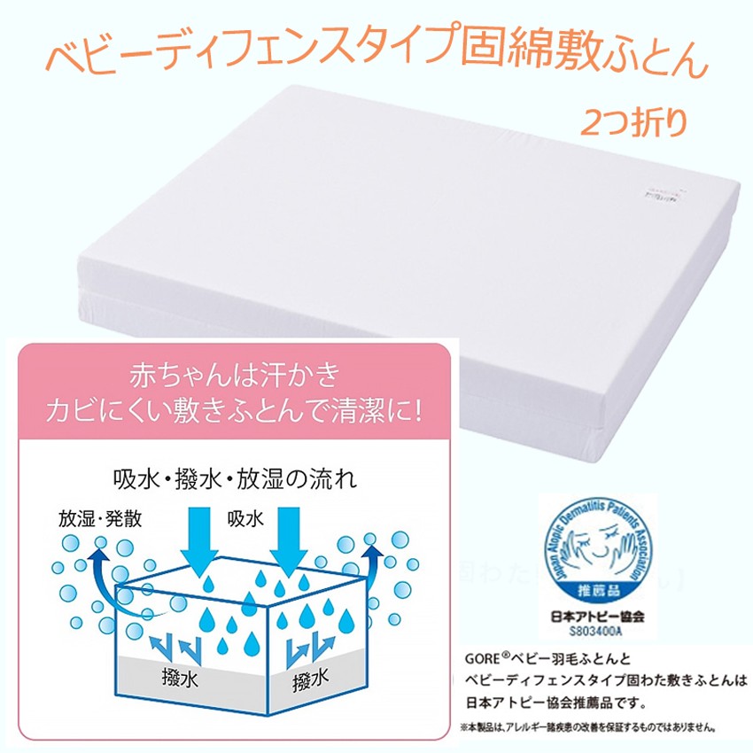 ディフェンスタイプ敷きふとんは 吸水性と撥水性に優れた2層構造になっているので、汗かきの赤ちゃんも快適です。 |