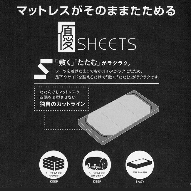 ◎特に、"3つ折りタイプ"の敷きふとんをたたむ時には便利です!!折りたためずに困っていた方にはとても助かるお薦めのシーツです!