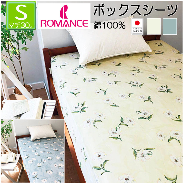 seora me ボックスシーツ シングル 綿100% ロマンス小杉 日本製 カサブランカ ユリ柄 40 サテン 100×200cm 6644-1315 マチ30cm