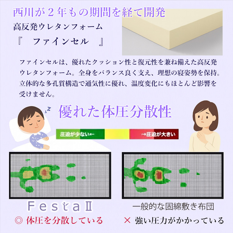 keyword :西川 マットレス フェスタ2 festa2 FESTA2 敷きふとん シングル シングルサイズ 敷布団 敷き布団 敷きふとん マットレス ベッドマットレス 健康敷きふとん 腰痛 肩こり 疲労回復 高反発 高反発マットレス ファインセル