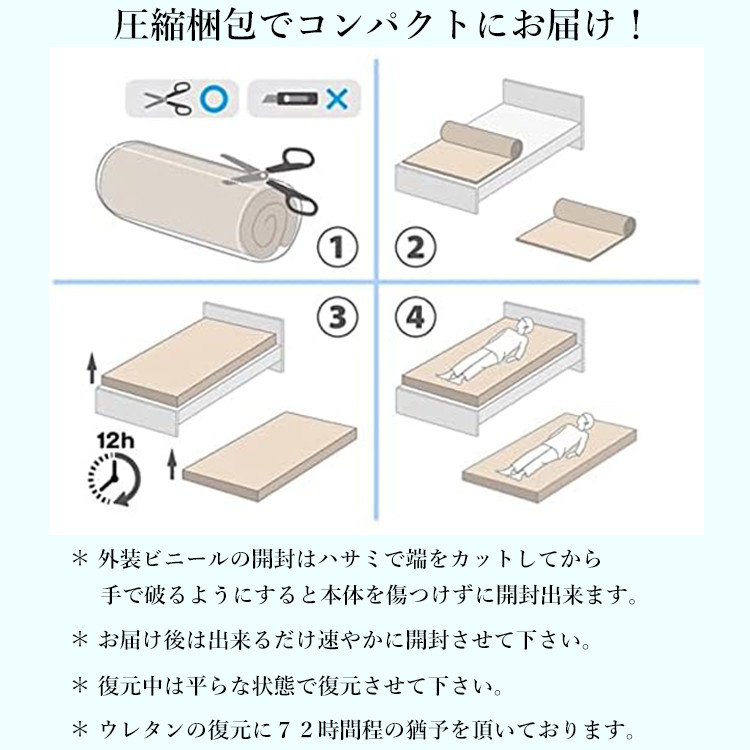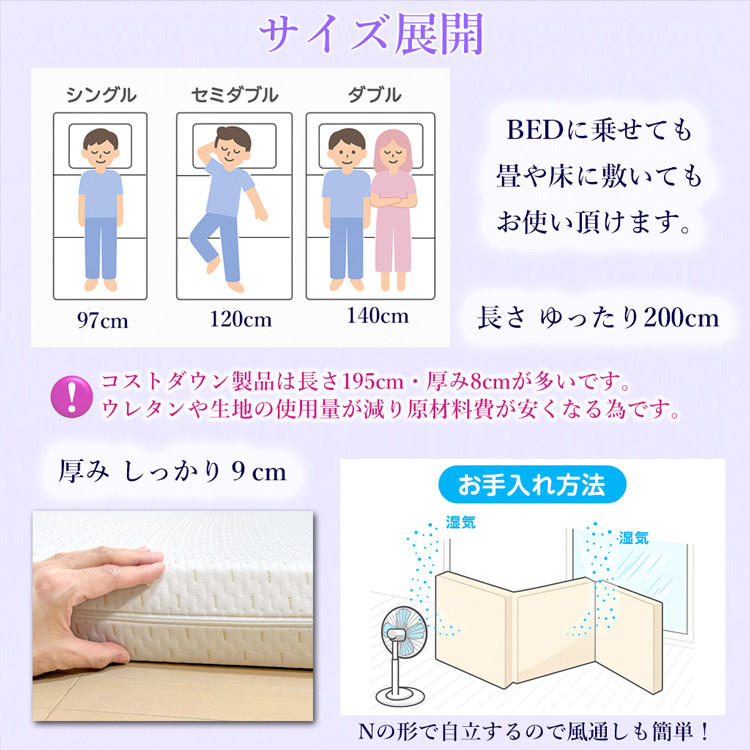 ベッドフレームの上や、敷布団としてフローリングや畳の上に敷いてお使いいただけます。
