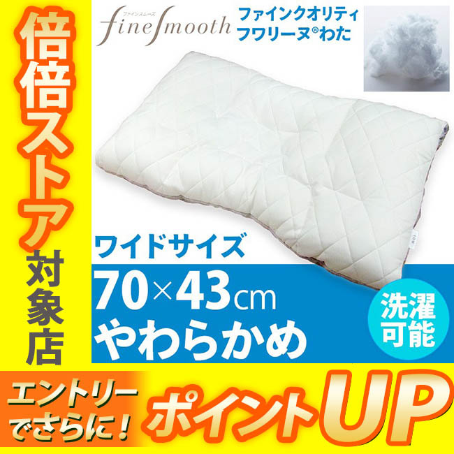 西川 ファインスムーズ フワリーヌわた EFA2281010 FA6010 ピロー 枕 まくら ウォッシャブル 柔らかめ やわらかめ ソフト 肩こり 疲労回復 快適 不眠 快眠 安眠 横向き 横向き寝 首にやさしい ぐっすり しっかり 寝姿勢安定 日本製 ワイドサイズ ワイドタイプ 70×43