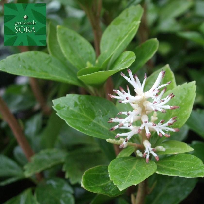 | ・ツゲ科 常緑多年草。 ・フッキ草には、フッキ草、斑入りフッキ草がございます。 ・4〜5月に、白い個性的な形の小花を穂状に咲かせます。 ・緑色の葉は、長さ5〜8cmの卵状楕円形で互生します。 ・半陰地を好むが半陽地、陰地でも育ちます。 ・和風、洋風の庭の下草として群植されることが多い。 ・乾燥に強く、大変丈夫です。 ・草丈は15〜30cm。 ・別名、キチジソウ(吉事草)と言われ、常緑で葉が密に茂る様子から「繁栄」の意味を持たせて名づけられました。 ・環境に馴染みやすく、どんな環境でもほとんど手入れの必要がありません。 ・乾燥に強いので、グランドカバーにも向いています。 |