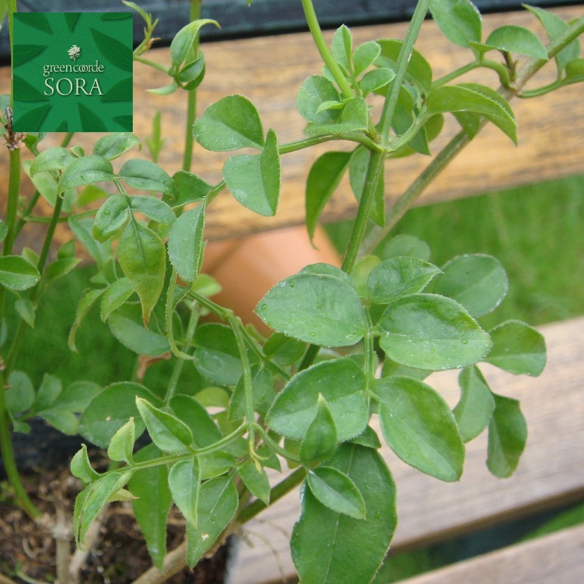 ・モクセイ科 常緑性 つる性低木 ・ジャスミンの中で最も知られています。 ・最終草丈は、20〜30cm程(つるの長さ) ・とても香りの強い白い花が枝全体に咲きます。 ・花はつぼみの時ピンク色をしています。 ・葉は細長い楕円形です。 |