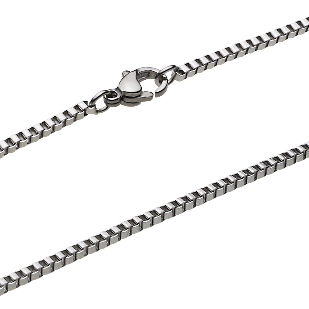 角ばったパーツを丁寧に繋ぎ合わせたステンレス製のベネチアンチェーンです。