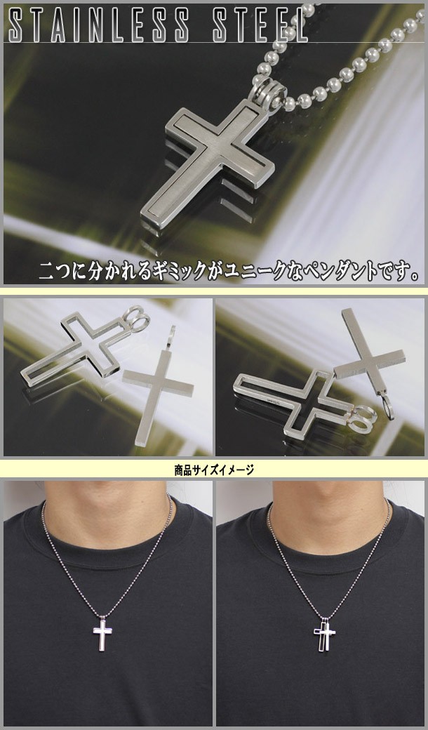 クロスが分離するステンレスペンダントです。二枚重ねで付けるもよし、