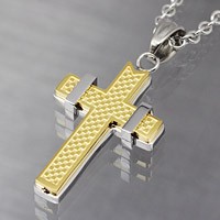 ステンレスペンダント メンズ ゴールド クロス ペンダントトップ ステンレスアクセサリー fp6024