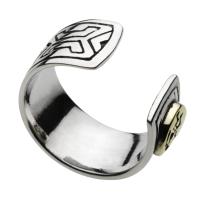 幸運を運んで来ると言われるココペリが真鍮パーツに彫り込まれたシルバーイヤーカフです。シルバー&ゴールドカラーの組み合わせが耳元にゴージャスな雰囲気をプラスしてくれます。ピアスホールが開いていない方でも装着可能なので、プレゼントにも最適な一品です。